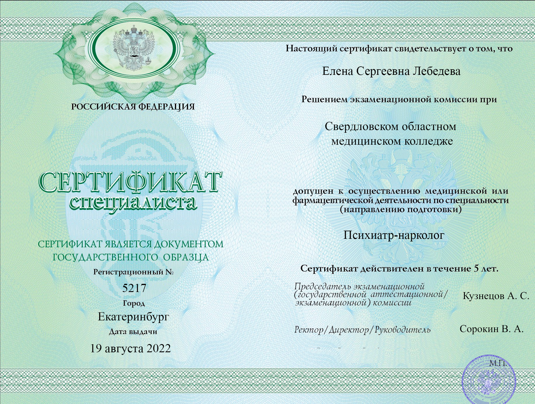 Елена Сергеевна Лебедева врач нарколог клиники доктора Стукаловой в Карачеве